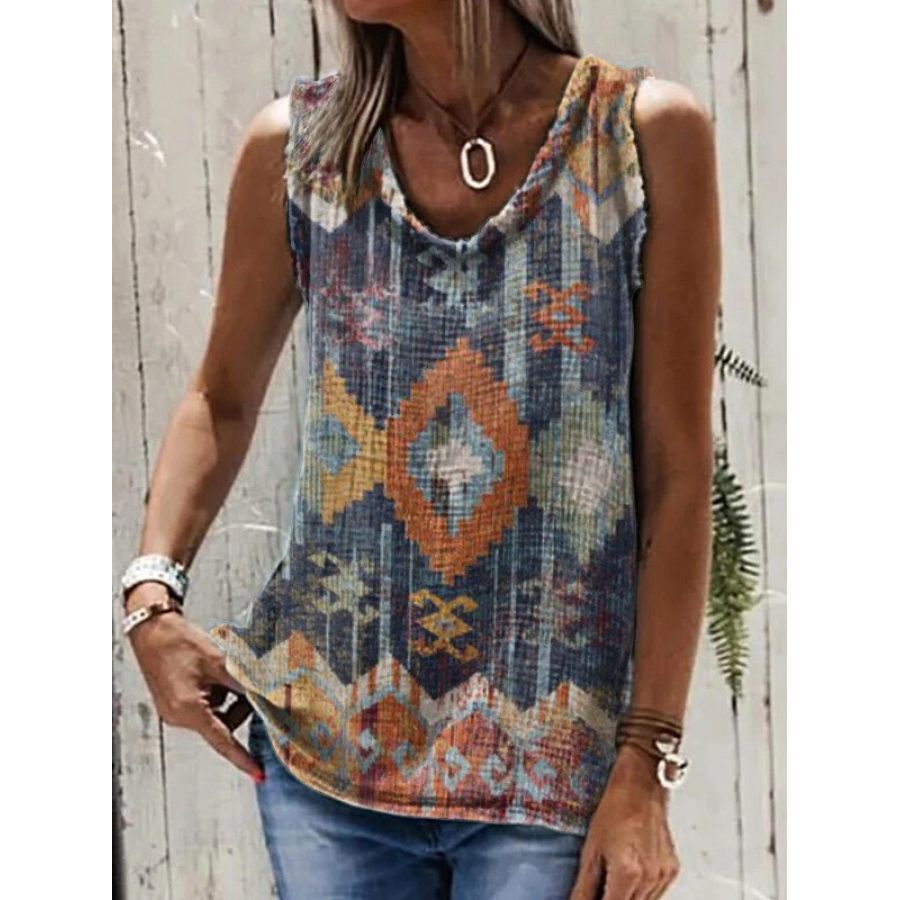 Gilet Col Rond à Imprimé Ethnique Rétro Occidental Pour Femmes