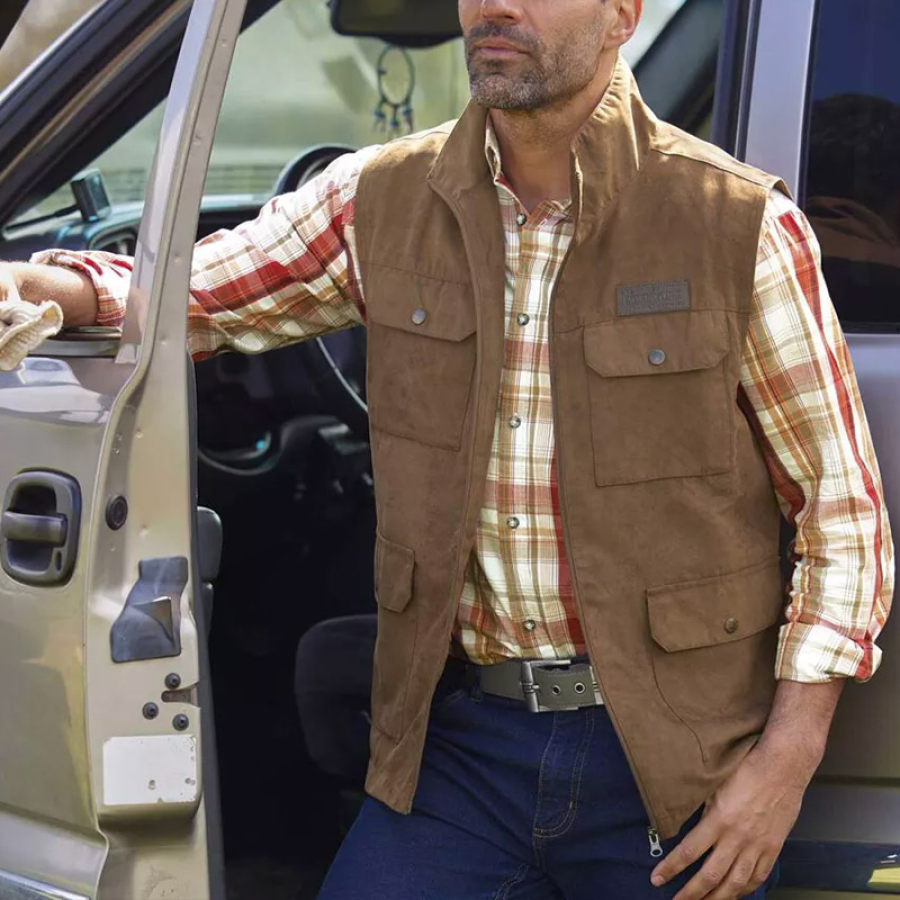 Gilet Da Uomo Western Yellowstone In Finta Pelle Scamosciata Con Zip Intera