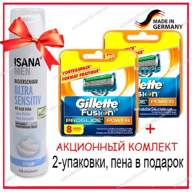 Gillette Fusion Proglide Power 16 шт. + пена для бритья Fusion Proglide gel оригинал Германия