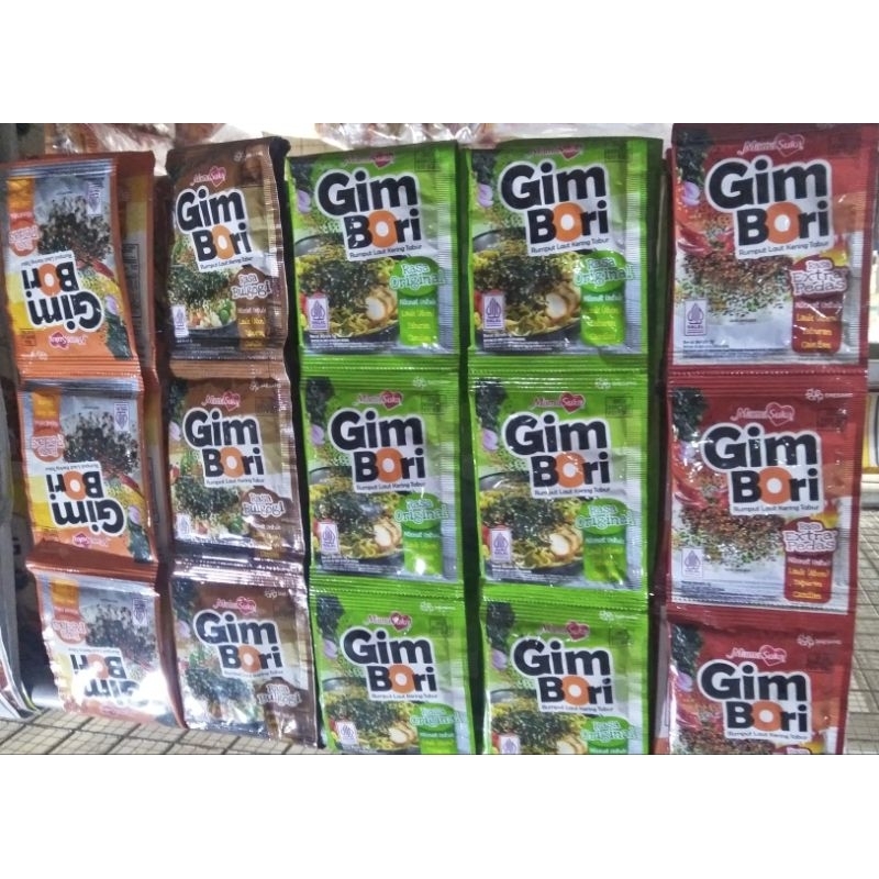 Gim Bori Original merupakan rumput laut kering tabur dengan rasa gurih. Terbuat dari rumput laut berkualitas yang dipanggang dan dicampur dengan bumbu pilihan. Cocok digunakan sebagai taburan di berbagai macam makanan, seperti nasi putih, nasi goreng, mie goreng, mie rebus, dan cemilan.