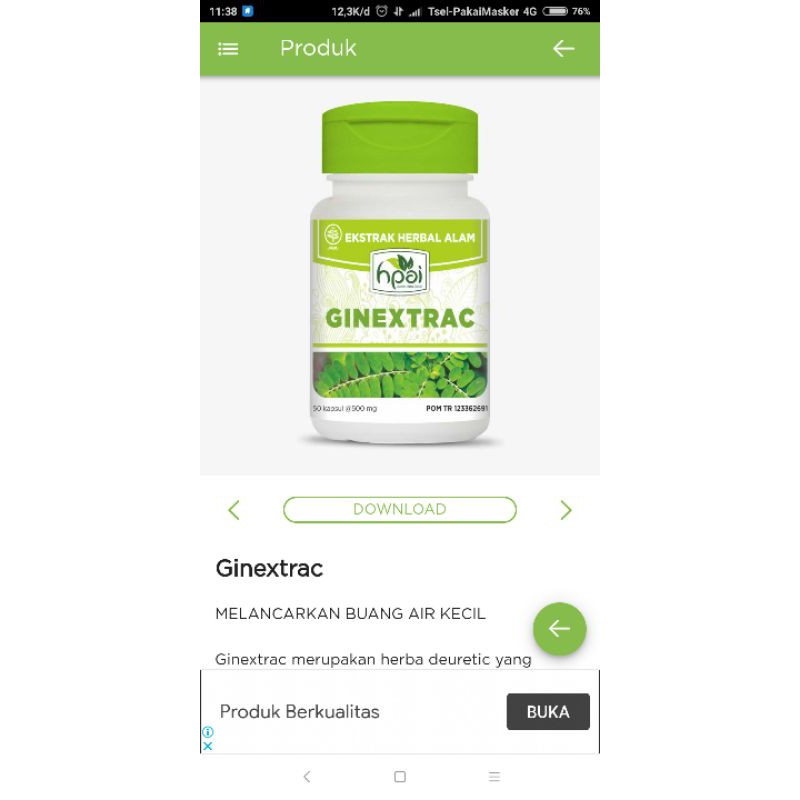 Ginextrac merupakan herba deuretic yang terbuat dari herba alami dan digunakan untuk membantu melancarkan buang air seni dan menghancurkan batu kandung kemih, batu empedu dan batu ginjal.