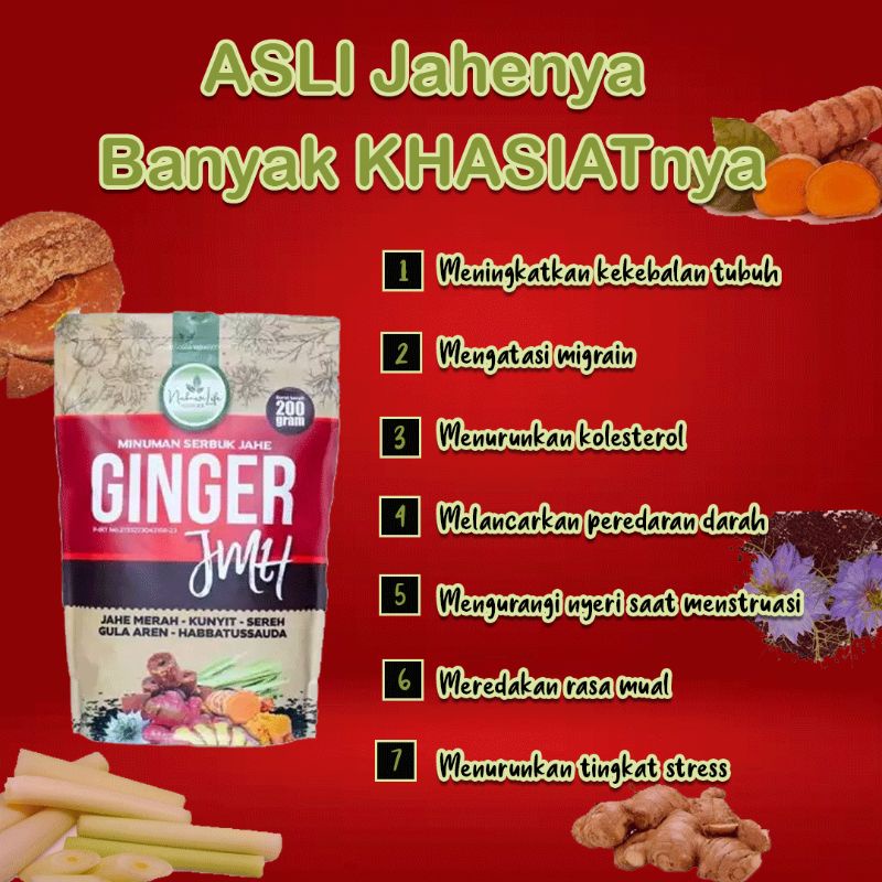 Ginger JMH merupakan Minuman Serbuk Jahe Merah Asli dan Habbatussauda.