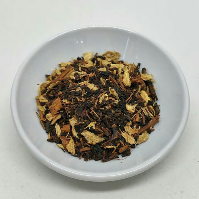 Teh hitam pilihan berkualitas dari pegunungan tinggi di Indonesia dicampur dengan 100% potongan jahe alami dan sedikit cinnamon/ kayu manis untuk menghasilkan teh dengan rasa pedas jahe natural dan wangi manis alami dari kayu manis. Sangat menyegarkan dan menenangkan. Cocok diminum di pagi hari atau saat cuaca hujan, dingin dan mendung.
