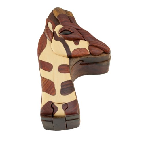 Giraffe Handmade Carved Wood Intarsia Puzzle Box