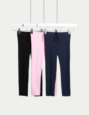 Girls M&S Collection 3pk Cotton Rich Ribbed Leggings (2-8 Yrs) - Multi, Multi