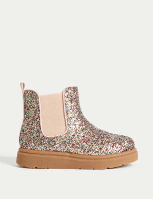 Girls M&S Collection Kids' Glitter Chelsea Boots (4 Small - 2 Large) - Pink Mix, Pink Mix