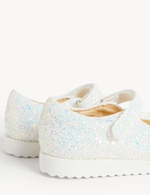 Girls M&S Collection Kids' Glitter Riptape Mary Jane Shoes (4 Small - 13 Small) - White, White
