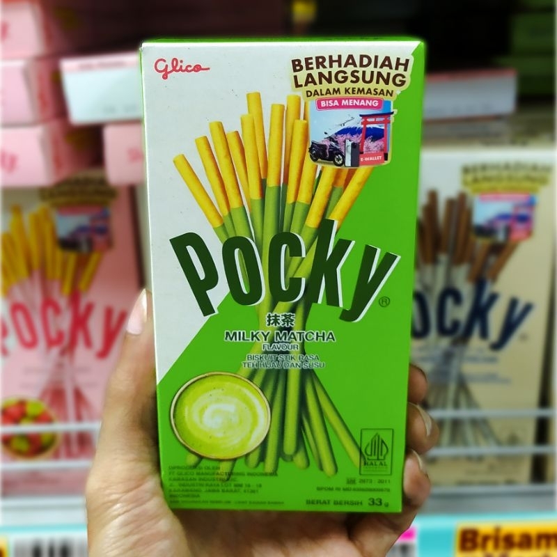 Glico Pocky Matcha 33g stik green tea yang begitu menggoda. Stik renyah dan panjang yang dilapisi krim green tea tebal begitu nikmat dan segar sehingga kepuasan menikmati keaslian rasa green tea atau teh hijau akan Anda temukan di setiap gigitannya. Tampi