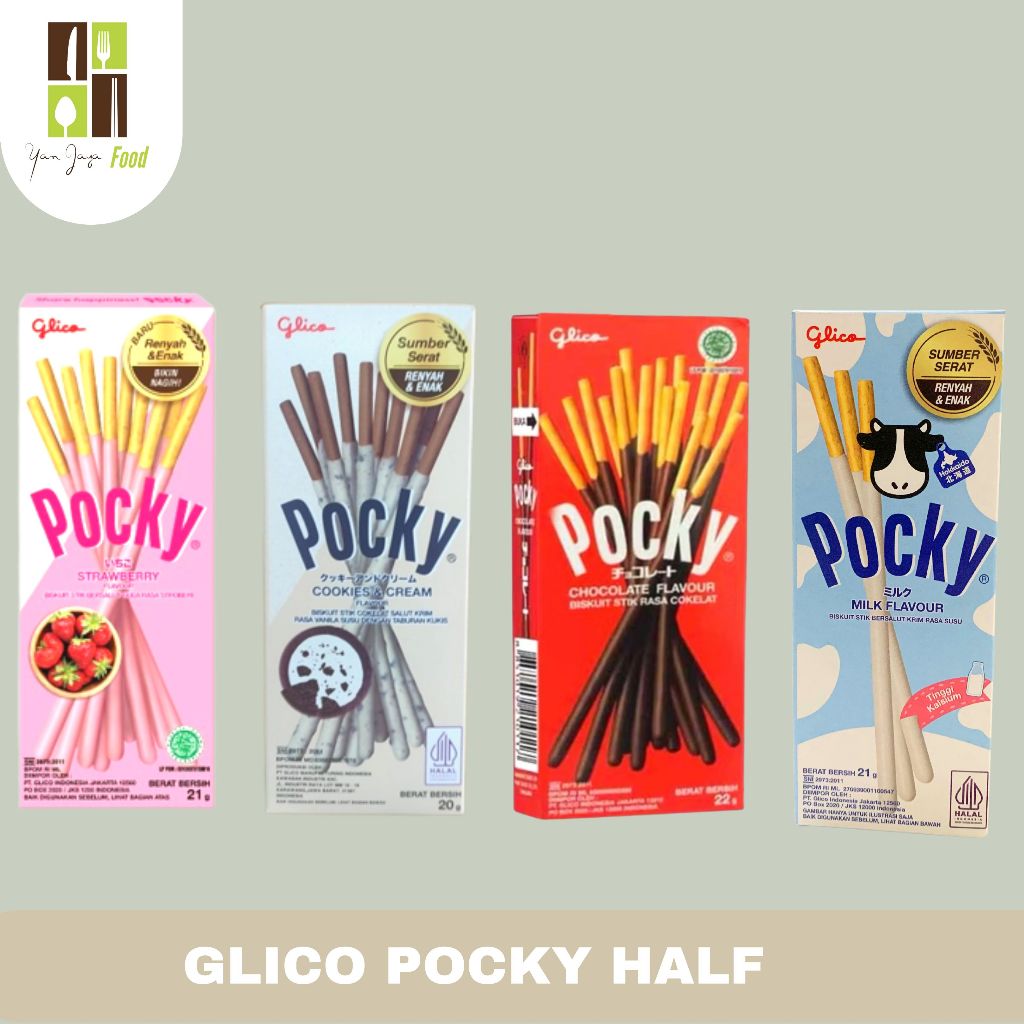 Glico Pocky Half/ Mini Biscuit Stick Rasa Strawberry/Cookis&Cream/Chocolate