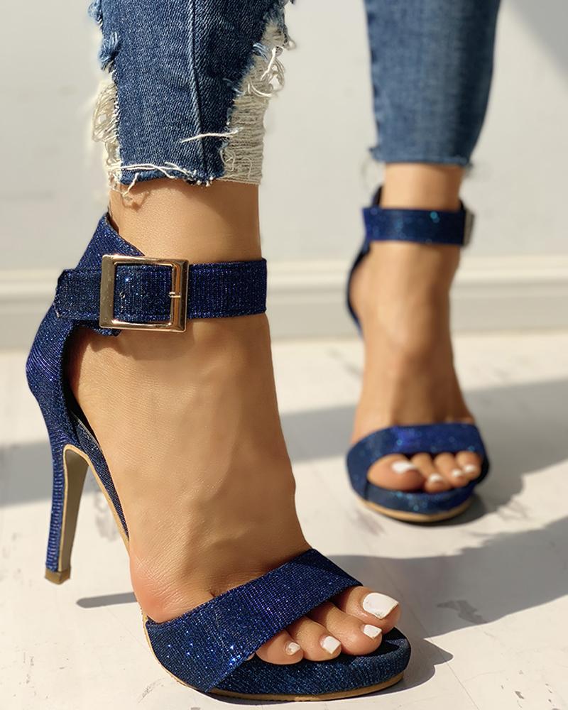 Glitter Ankle Buckled Thin Heeled Sandals, Blue