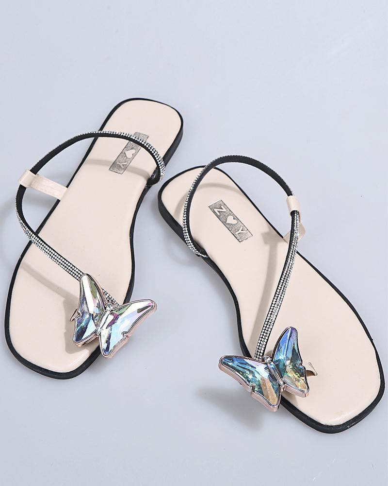 Glitter Bowknot Butterfly Post-toe Open-toe Flat Sandals, Beige