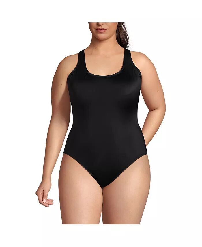 Плюс размер Устойчивый к хлору X-Back Высокий крой Мягкая чашка Спортивный цельный купальник без корсета Lands' End, черный
