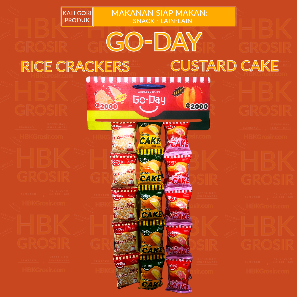 Go-Day Rice Crackers dan Custard Cake/Strawberry - Renteng Mix [HBK GROSIR - Hemat Beragam Komplit]