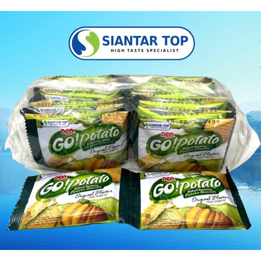Go Potato adalah biskuit kentang yang terbuat dari kentang asli tanpa digoreng. Biskuit ini memiliki rasa gurih dan tekstur renyah. Go Potato cocok untuk dijadikan camilan ringan atau teman minum teh atau kopi.