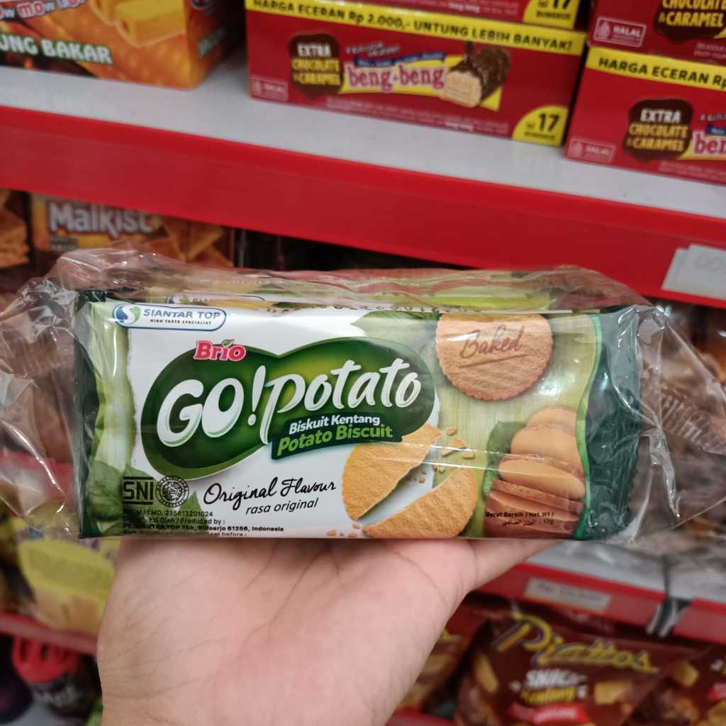 Go potato adalah biskuit keluarga yang terbuat dari bahan kentang asli dan tanpa melalui proses penggorengan, sangat cocok disajikan dalam acara keluarga, camilan sambil minum kopi dipagi hari, maupun menjadi sahabat dalam segala suasana.