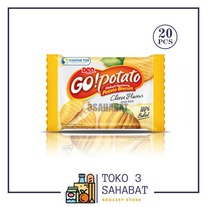 Deo Go Potato merupakan biskuit bergizi yang terbuat dari kentang pilihan tanpa melalui proses penggorengan. Deo Go Potato sangat cocok jika dinikmati bersama keluarga maupun sahabat dalam segala suasana.