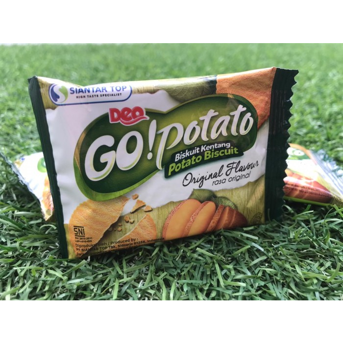 Salah satu brand dari Siantar Top adalah GO Potato. Adalah biskuit dgn bentuk bulat dgn ketebalan sangat tipis, diproses dgn cara panggang, menjadikannya sangat renyah dan sangat enak dikunyah. Berbahan dasar kentang, biskuit ini terasa begitu gurih. Snack yg sangat ringan dan begitu lezat. Dijual dgn kemasan renceng isi 20 bks, 1 bksnya ber netto 10gr. Ber atribut lengkap dgn BPOM RI, SNI dan Halal MUI. Silahkan di order :)