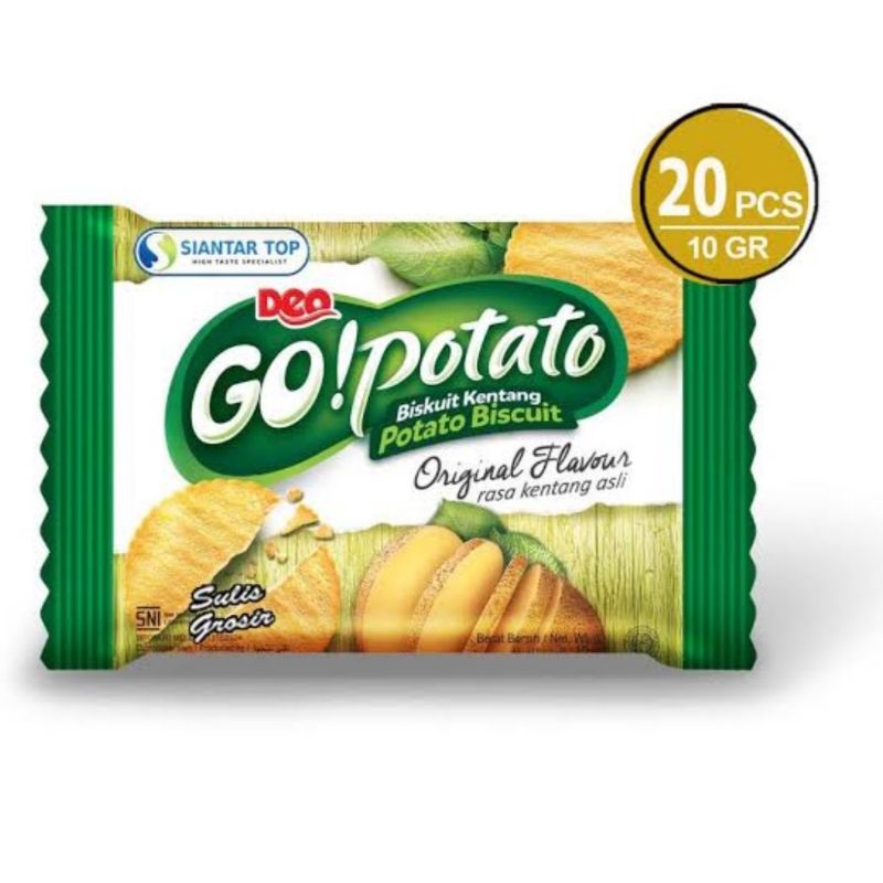 Biskuit kentang dengan rasa enak dan renyah, sangat cocok untuk teman cemilan anda dan keluarga, dimana pun dan kapan pun.