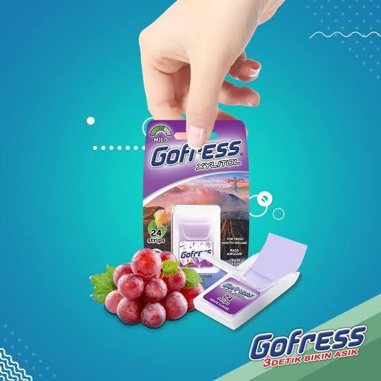 Gofress Anggur adalah permen penghilang bau mulut berbentuk lembaran tipis dengan rasa anggur. Permen ini dapat menyegarkan napas dan cepat larut di mulut.