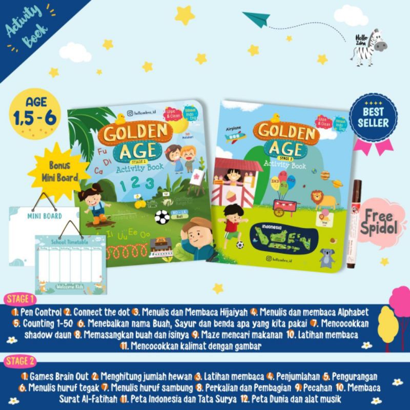 Golden Age Activity Book FREE Mini Board dan Spidol Wipe Clean