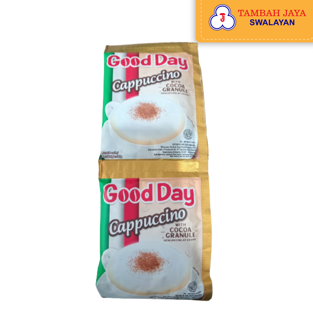 Salah satu varian Kopi Good Day paling banyak difavoritkan adalah Good Day Cappuccino. Kopi ini merupakan gabungan antara biji kopi dipadu dengan gula, susu skim, krimer, dan cokelat.