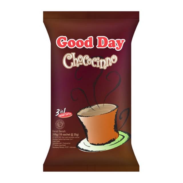 Good Day Chocochinno Gimana sih kalau Kopi jadian sama Coklat? Temuin rasanya di Kopi Instan 3in1 Good Day Chococinno yang pasti bikin kamu dan sahabat kamu ketagihan. Kopi instant enak? Ya kopi Good Day! Karena hidup banyak rasa, kopi Good Day punya banyak pilihan rasa untuk harimu!