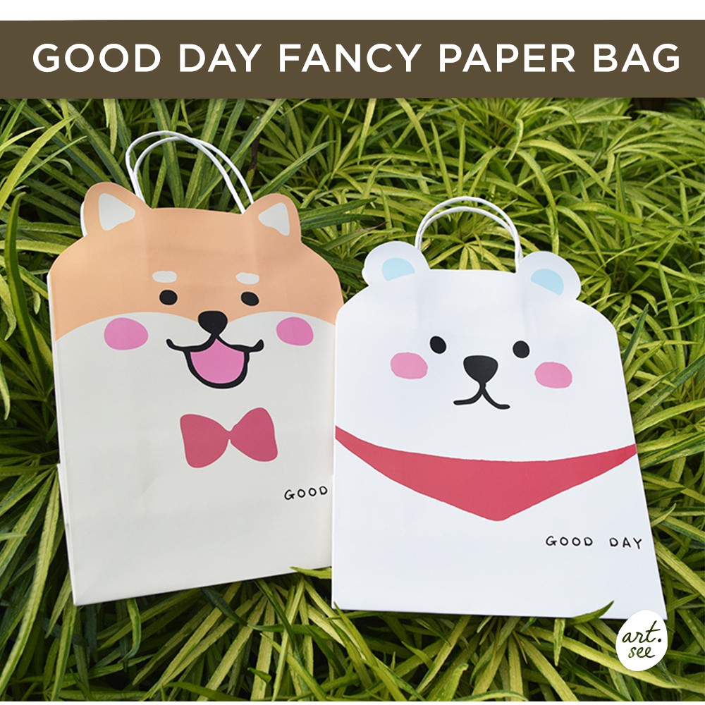 Kantong kertas dekoratif ber25tema karakter beruang putih yang lucu dan shiba inu yang menggemaskan. Dengan ukuran yang lumayan besar, cocok untuk menyimpan apa saja. Gunakan untuk memberikan bingkisan/kado atau sekedar pengganti kantong biasa. Bahan kantong terbuat dari kertas karton tebal dan dilengkapi tali kertas yang tidak mudah koyak.