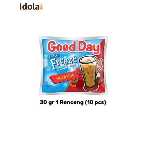 Good Day Coffee Freeze Renteng (10 x 30 Gr) Kalo panas enaknya minum apa yaaaaa? Yang dingin-dingin donk.... Dengan Kopi Instant 3in1 Good Day Freeze Mocafrio yang bisa larut pake air dingin, Kopi Mocca nikmat ini bisa jadi pilihan yang tepat banget untuk kamu minum di mana saja dan kapan saja. Kopi instant enak? Ya kopi Good Day! Karena hidup banyak rasa, kopi Good Day punya banyak pilihan rasa untuk harimu!