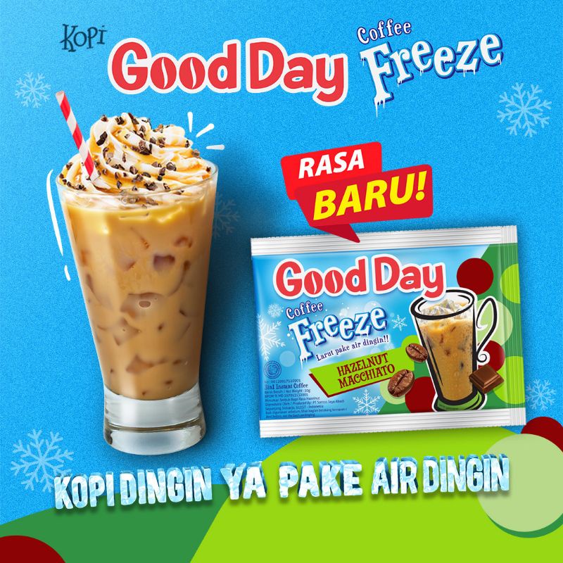Good Day 3 in 1 Coffee Freeze adalah minuman kemasan sachet kopi Good Day instan yang hadir untuk hari-harimu yang penuh warna. Rasakan kesegaran dan sensasi dingin kopi yang nikmat dalam harimu yang seru bersama Good Day 3 in 1 Coffee Freeze.