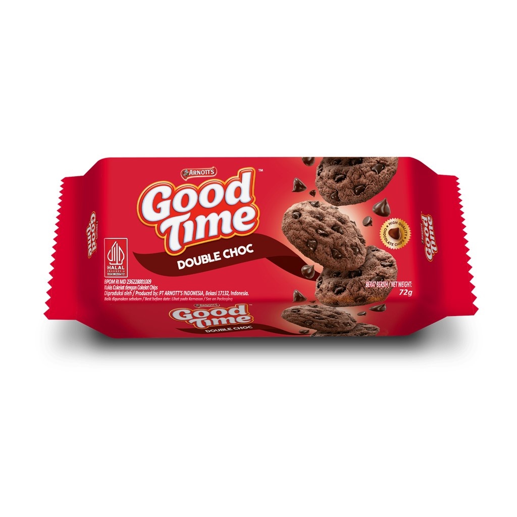Perpaduan renyah dan manisnya menjadikan Good Time Double Chocochips & Dip Choco Cookies pilihan yang tepat dalam berbagai kesempatan.