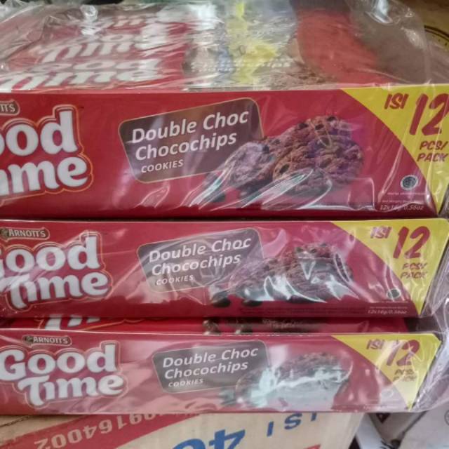 Good time biskuit dengan chocochips lezat di setiap kepingnya. 1 dos isi 10 box. 1 box isi 12 pcs #goodtime #goodtimecookies
