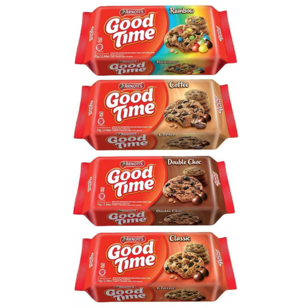 ● Good Time Rainbow: Biskuit dasar Good Time dengan taburan choco chips berwarna-warni.
