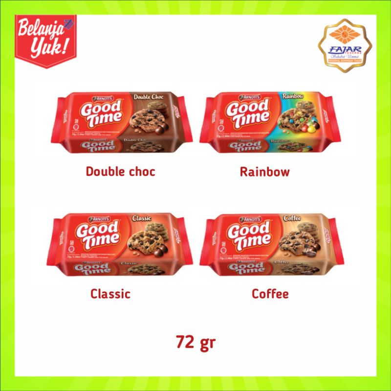 Good Time Cookies Chocochips All Varian Semua Rasa Classic Double Choco Coffee dan Rainbow 72 Gr