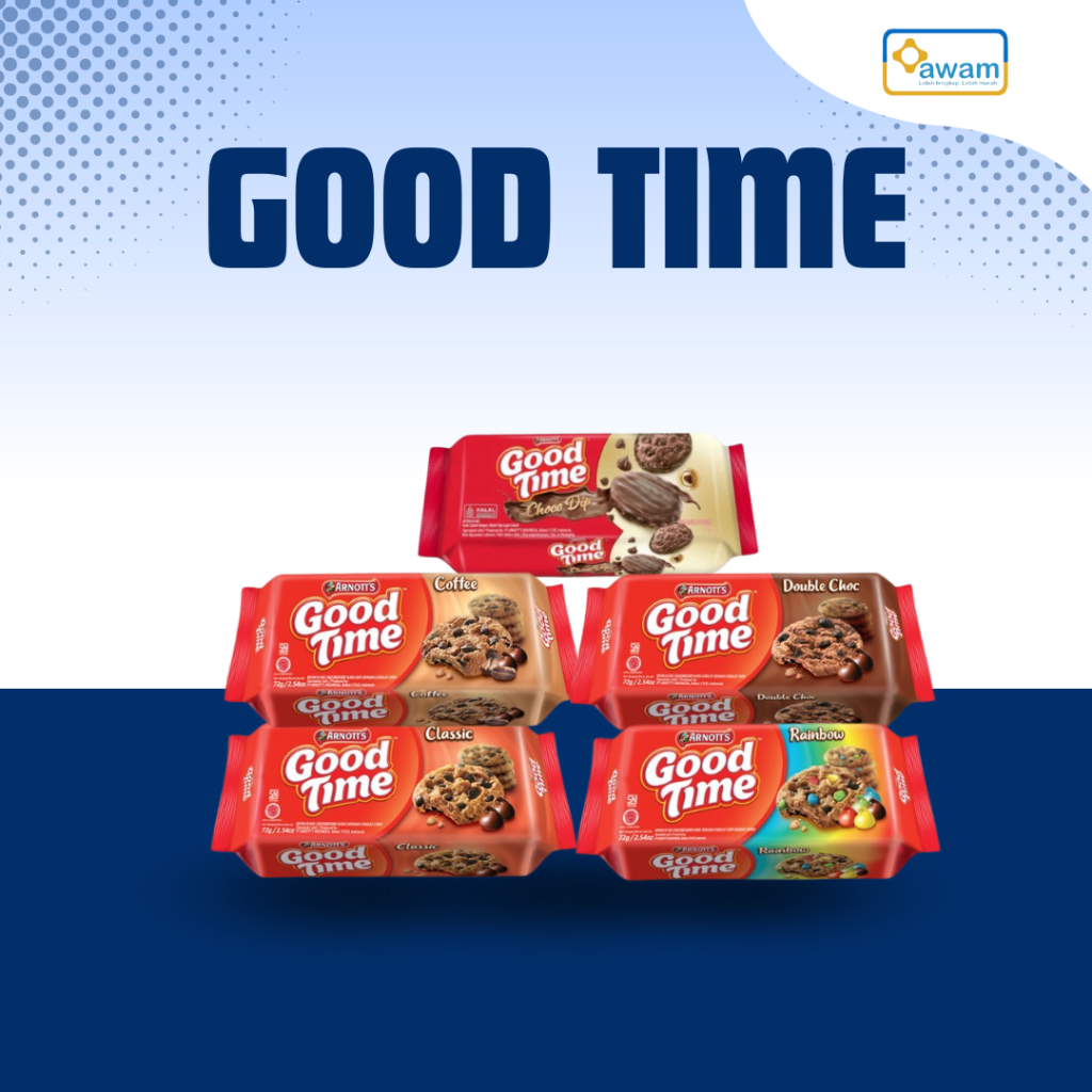 Good Time Cookies Classic memiliki tekstur renyah dan manis membuat Cookies Good Time Classic Chocochips camilan favorite dikala santai. Biskuit yang bertabur chocochip menjadikan produk ini disukai oleh semua kalangan baik anak-anak, dewasa hingga lanjut usia.