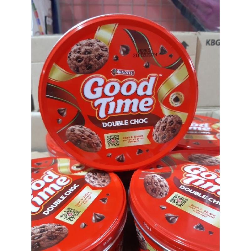 Good Time Double Chocochips Cookies, merupakan cookies cokelat favorit dengan tekstur yang renyah. Chocochip-nya berlimpah di setiap gigitannya. Ideal dinikmati saat santai bersama keluarga. Good Time Double Chocochips Cookies