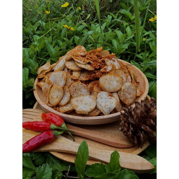 makanan ringan khas garut terbuat dari tepung kanji dan tepung terigu pilihan beserta bumbu rempah rembah dan cabe giling asli buatan sendiri