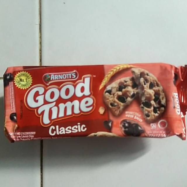 Good Time Classic Chocochips Cookies 72gr merupakan snack biskuit persembahan GOOD TIME yang sangat renyah dan enak. Biskuit ini bertabur coklat lezat yang menambah kenikmatan setiap gigitanya. Terbuat dengan bahan berkualitas dan melalui proses dengan teknologi tinggi sehingga aman di kosumsi dan hiegienis. Sangat cocok menjadi teman disaat bersantai. BPOM MD 236228002009 Shelf Life 12 months