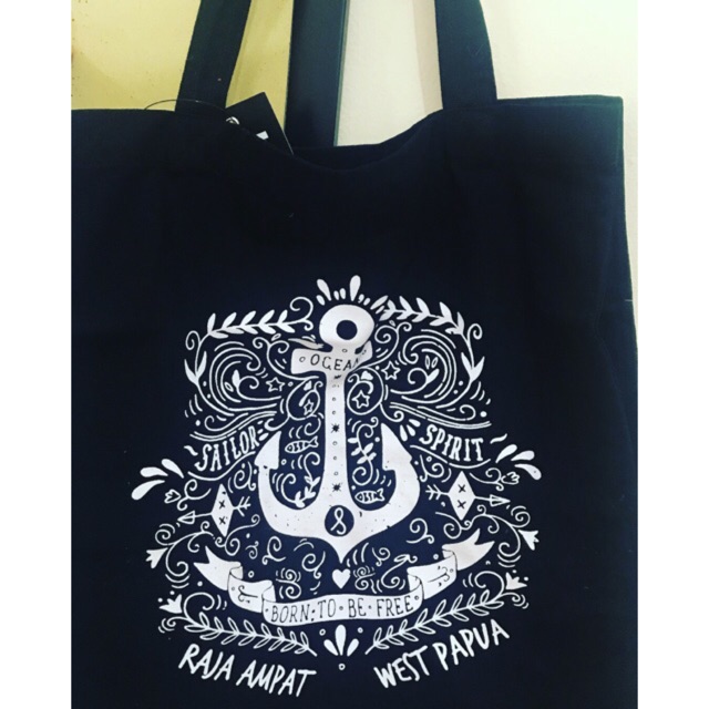 Goodie bag berbahan katun, tidak memiliki resleting, souvenir dari Raja Ampat