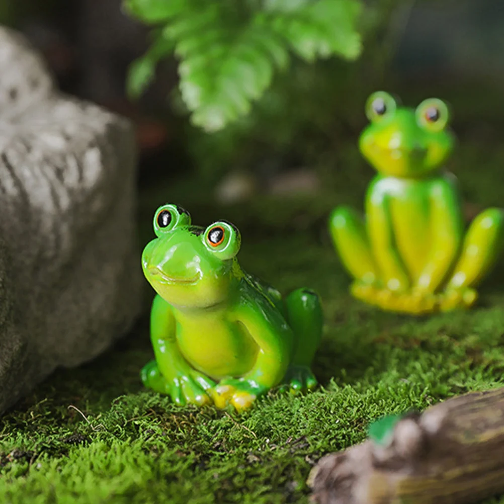 2 Pcs Crafts Mini Frog Decor Succulents Ornaments Resin Garden Decors Micro Scene Animal Figurine Statue