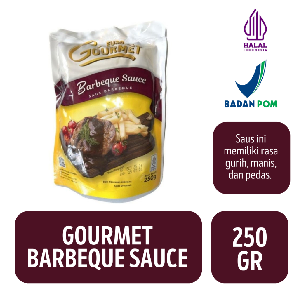 Euro Gourmet Barbeque Sauce 250 gr adalah saus barbeque yang dapat digunakan sebagai olesan panggangan atau dicampur dalam masakan.