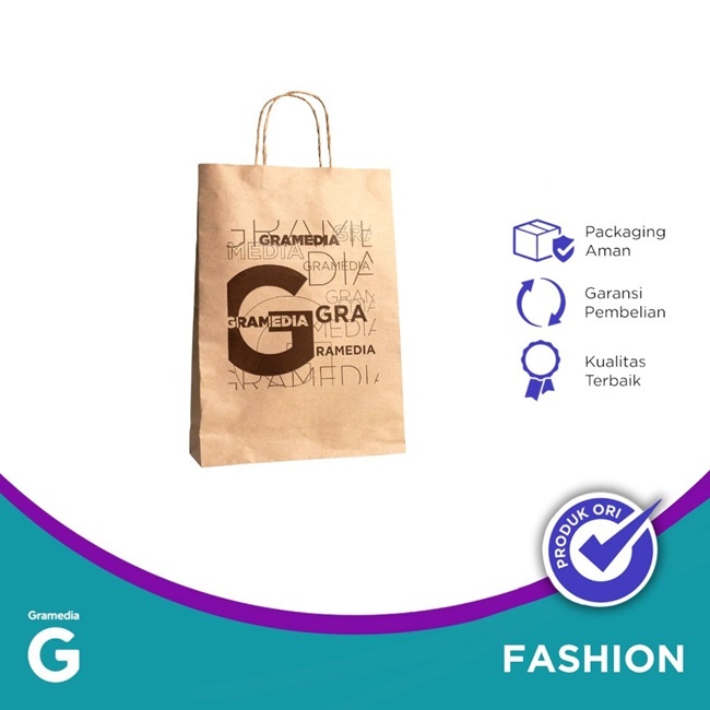 Paper bag berkualitas dengan logo Gramedia, ideal untuk kemasan buku atau barang lainnya.
