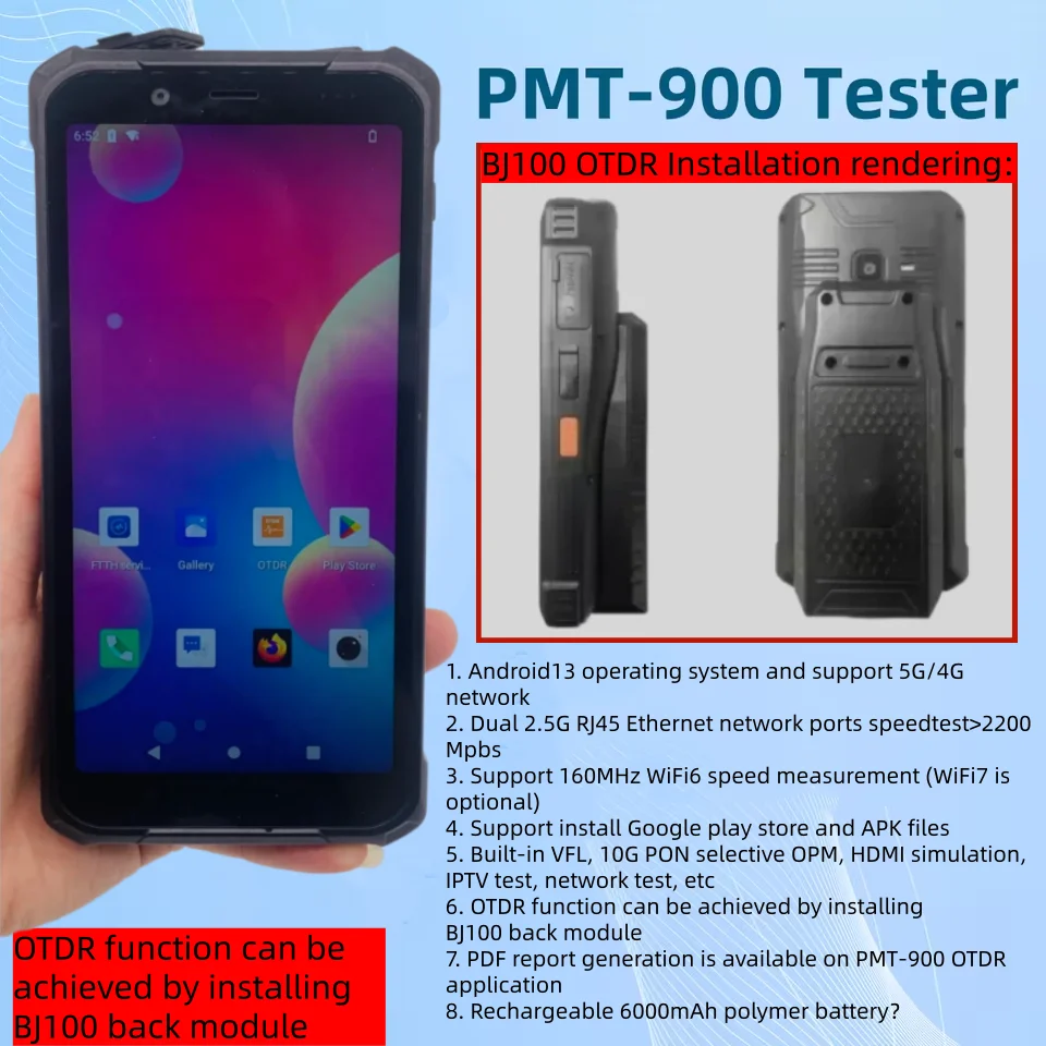Grandway Original PMT Series Handheld PDA TouchScreenTerminal With OPM,VFL,otdr TV Simulation, Speedtest, Android 13OS Network