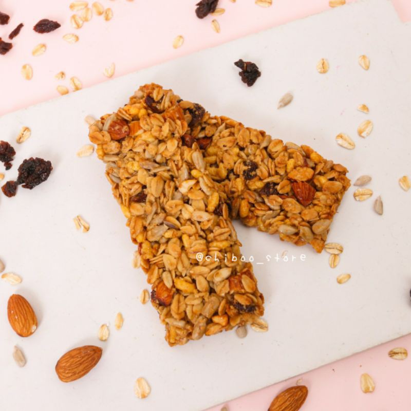 Granola Bar adalah snack sehat kekinian yanv terbuat dari bahan bahan alamai dan berkualitas.