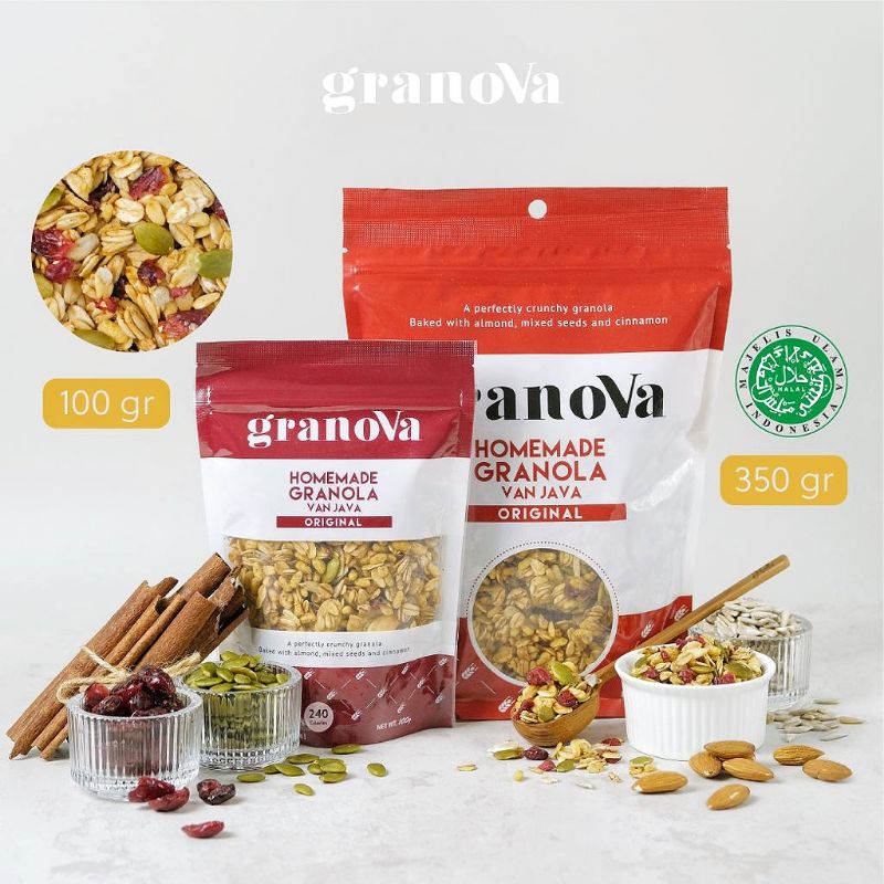 Granola dari Granova adalah sereal granola homemade, menu sarapan penuh gizi atau cemilan sehat yang terbuat dari bahan-bahan dan gula alami yang terdiri dari oat, kacang-kacangan , biji-bijian dan buah-buahan kering.
