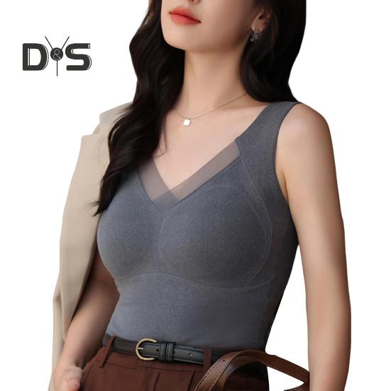 Graphene DE Velvet Утепленный жилет Эластичная ткань V-образный вырез Дизайн 3D Бесшовные чашки Теплый внутренний слой Нижняя часть Верхняя одежда Осень-Зима XXL серый