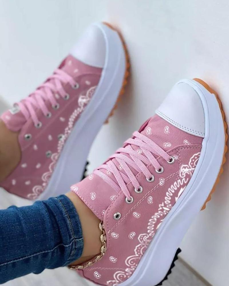 Graphic Pattern Lace-Up Front Sneakers, Pink