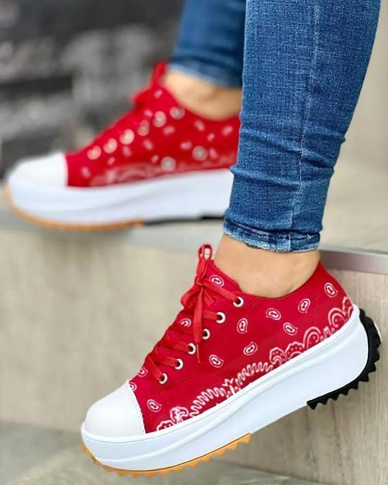 Graphic Pattern Lace-Up Front Sneakers, Red
