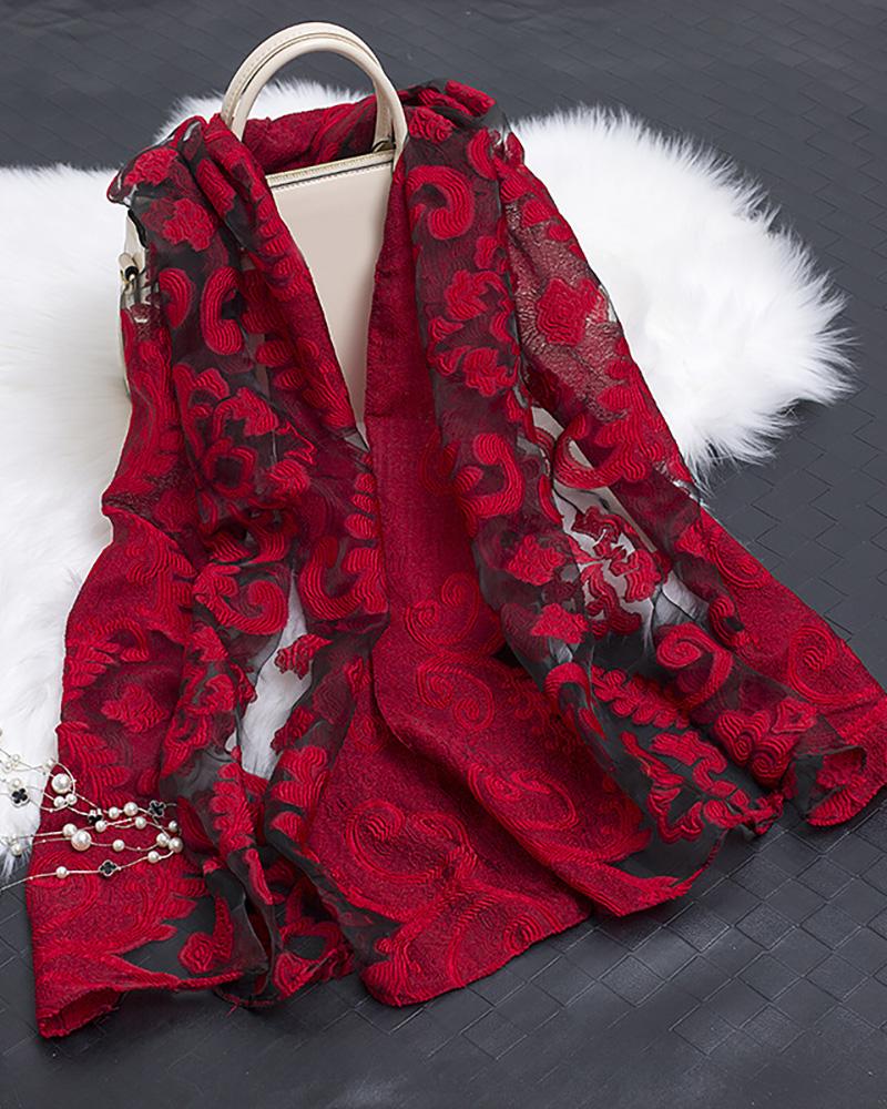 Graphic Pattern Mesh Scarf, Red