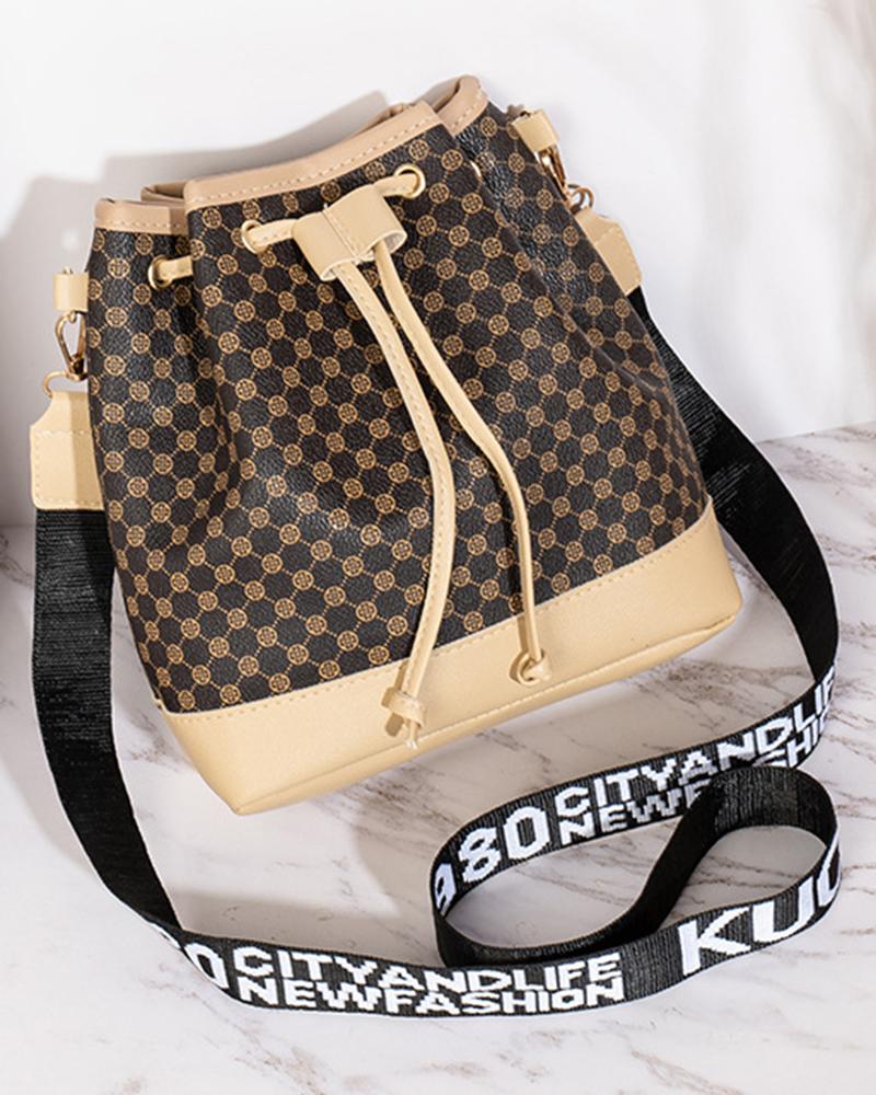 Graphic Print Drawstring Bucket Crossbody Shoulder Bag, Apricot