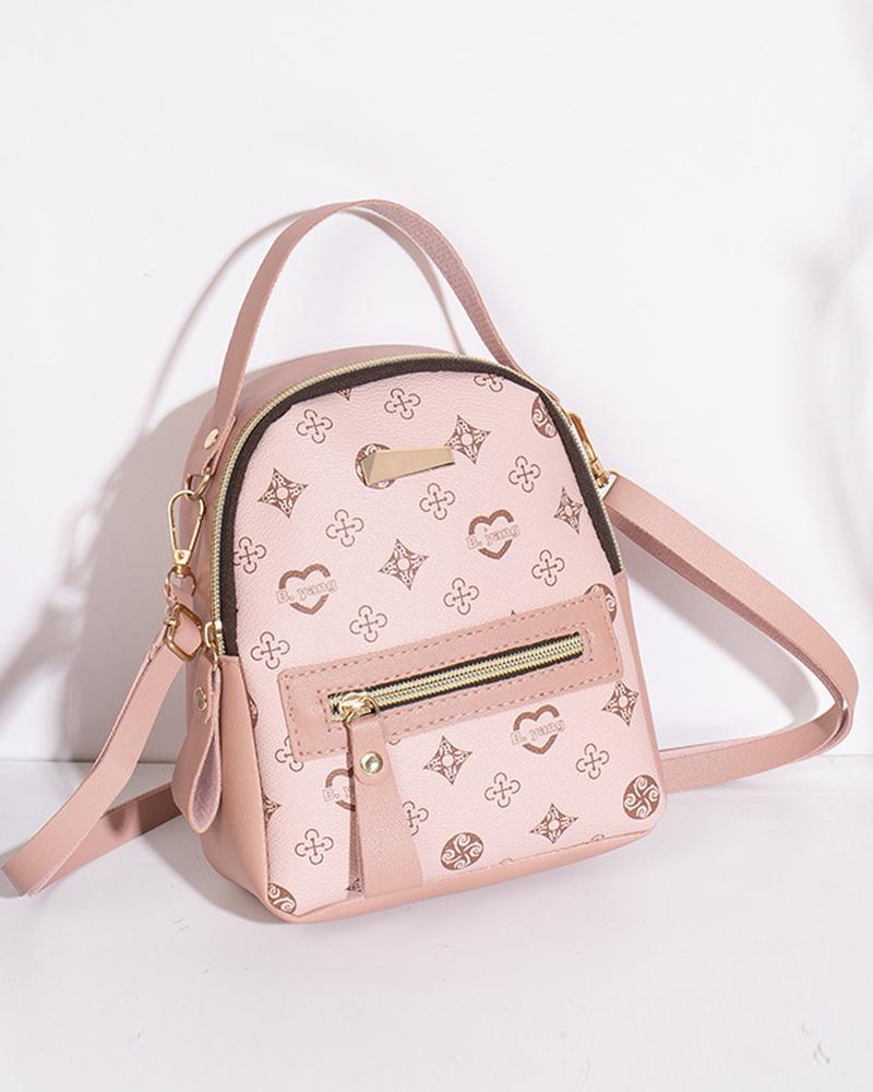 Graphic Print Zipper Design Backpack, Pink